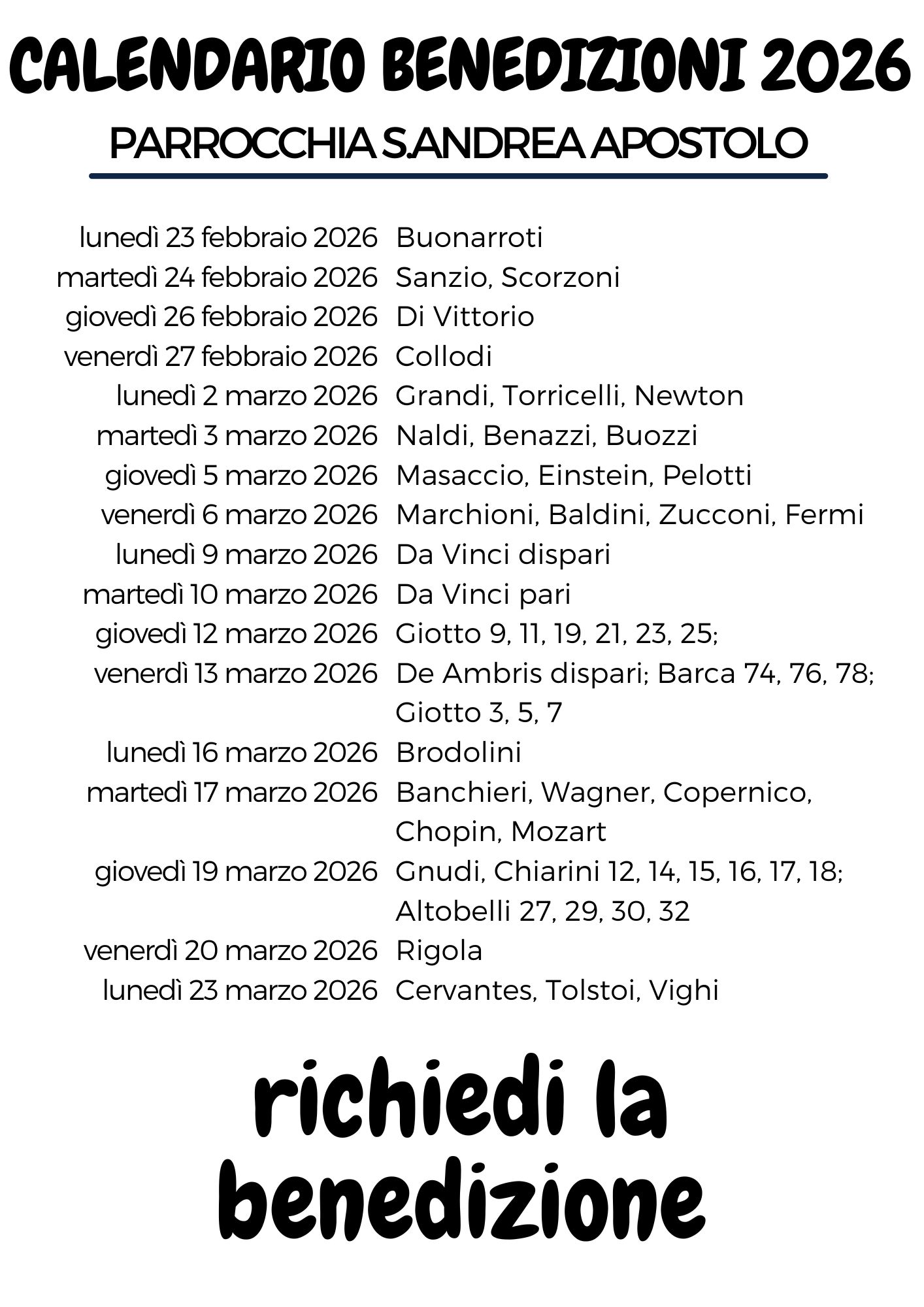 - Modulo e calendario delle benedizioni a Sant’Andrea 2026